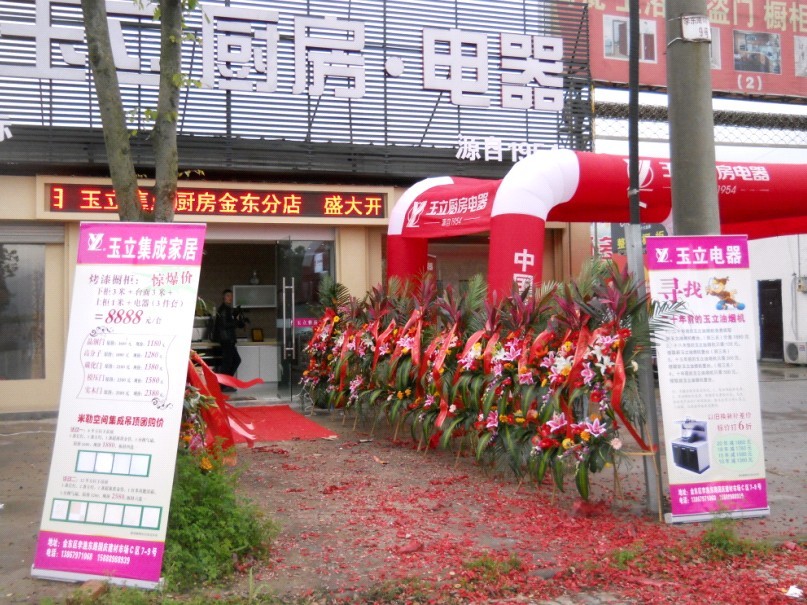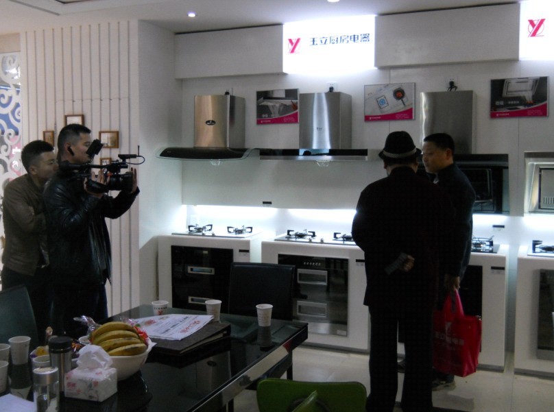 在細雨綿綿的日子里,浙江玉立廚房電器金華金東專賣店盛大開業,開業當日金華本地媒體對現場做了直播報道。