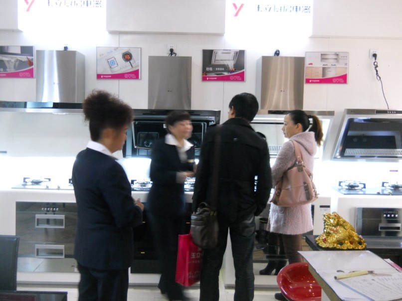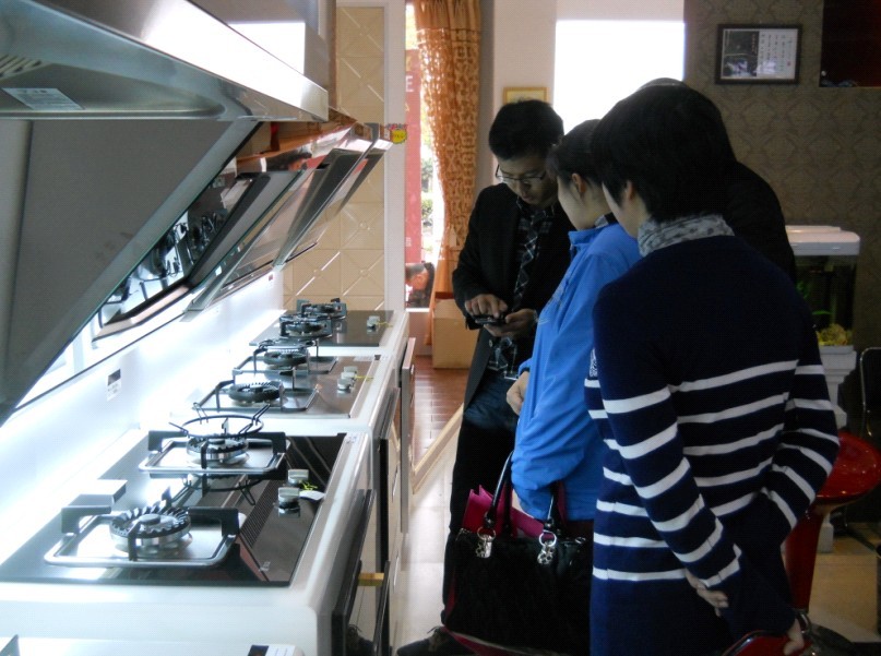 (顧客挑選廚電產品)