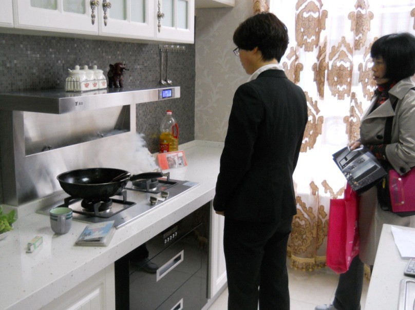 (講解并演示集成灶)